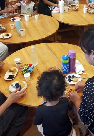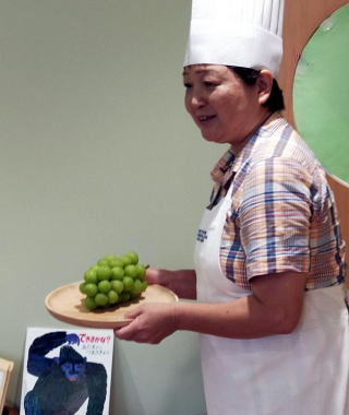 | おやつはぶどう(デラウエア)とブルーベリー みくにクッキー(形はかえると傘とかたつむり) |