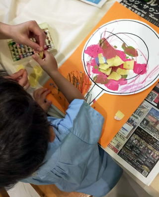 野菜スタンプでお絵描き。それから、お庭でプレイデー
